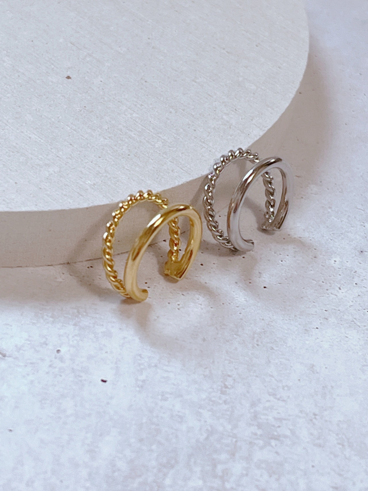 細身のラインが軽やかに、さり気ないアクセントを与えてくれるイヤカフ